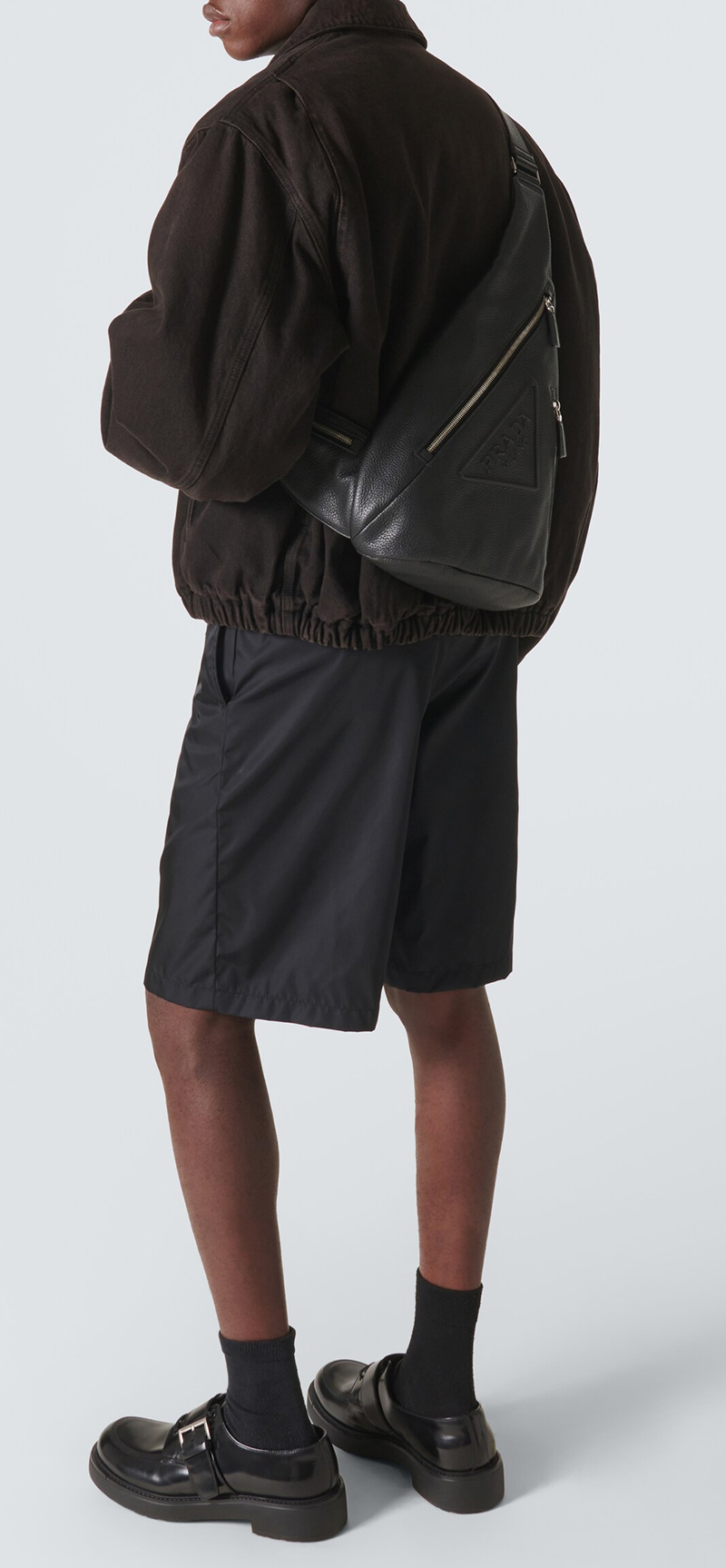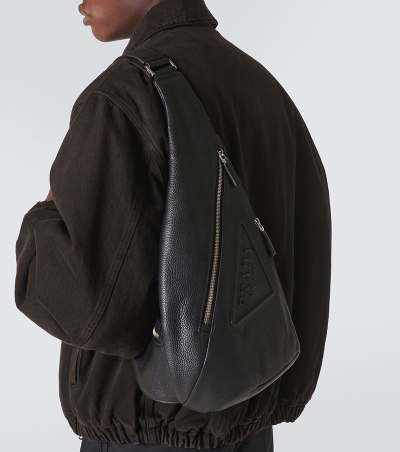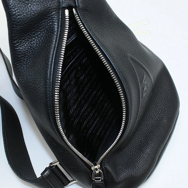 【PRADA】のレザークロスボディバッグのご紹介です。プラダの洗練されたデザインが光るアイテム。ブラックのグレインレザーが上品で、バックパックとショルダーバッグのハイブリッドスタイルは洗練されたミニマリズムが際立ちます。エンボスロゴと調節可能なレザーショルダーストラップが機能性を高め、バッグを身につけるとスマートで都会的な印象を与えます。カジュアルなデイリースタイルから、ちょっとした外出やイベントまで、多彩なコーディネートにマッチし、シーンを選ばず使えるスタイリッシュなアクセサリーです。