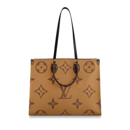 - インパクトあるデザインと機能性を兼ね備えた「オンザゴー GM」。ジャイアント・モノグラム キャンバスで仕立て、両サイドとハンドルにモノグラム・リバース パターンをあしらうことで、異なる色とスケール感がスタイリッシュなコントラストを描く特別な1品に仕上がりました。収納力に優れ、日常使いに最適なバッグです。
