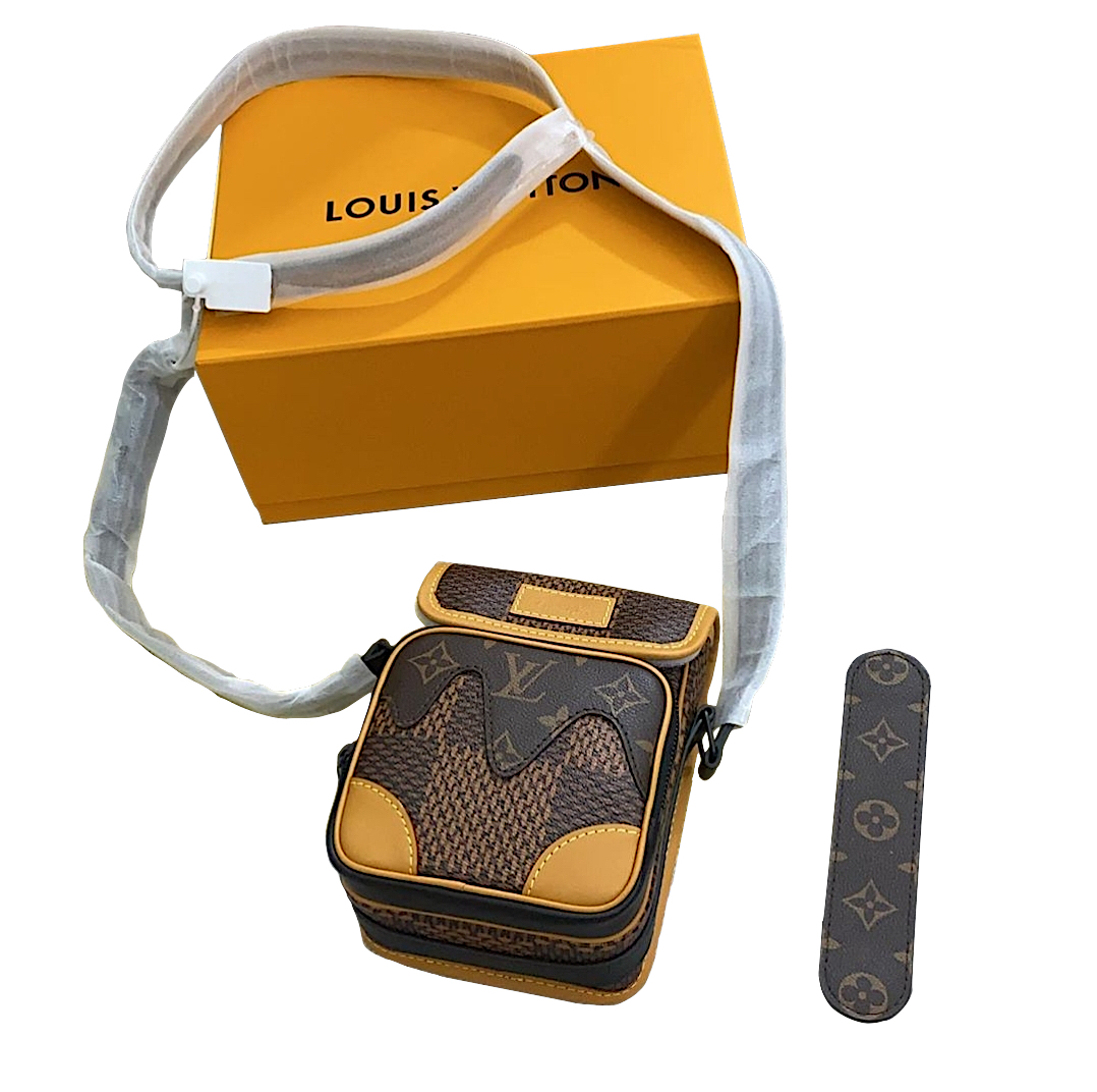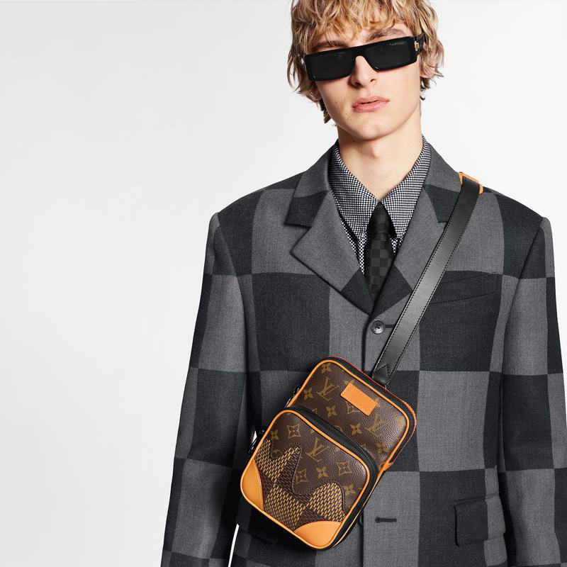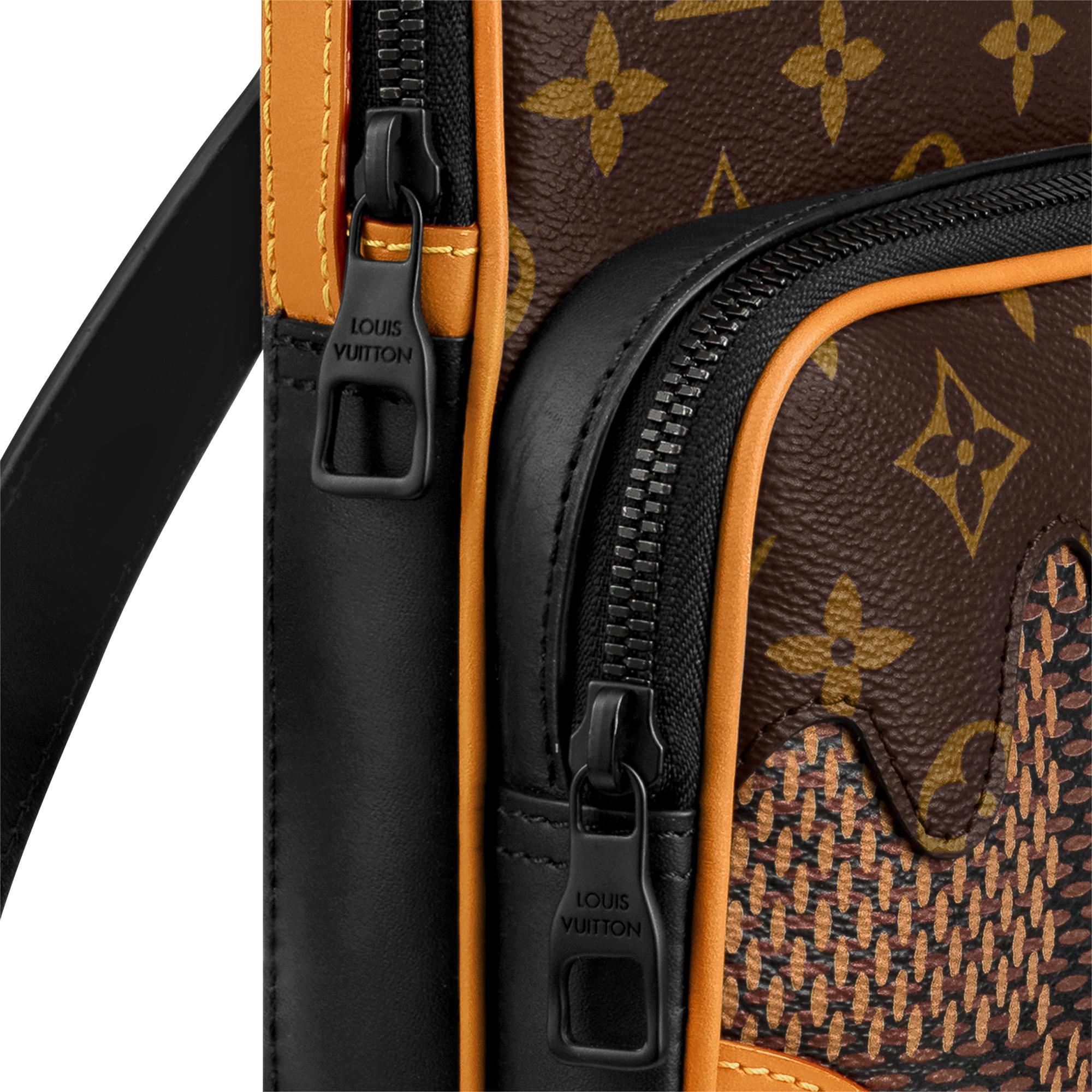 クロスボディ キャリー用にデザインされたスポーティな Nigo Amazone メッセンジャー バッグは、Giant Damier Ebene キャンバス製で、マット ブラックのハードウェアと調節可能なストラップが付いています。Virgil Abloh と日本のストリートウェアの天才 Nigo とのコラボレーションの一環です。フロントポケットにはモノグラム キャンバスを使用し、Nigo のドリップ ウェーブ シグネチャーをあしらっています。カラー:ブラウン素材: ジャイアント ダミエ エベヌとモノグラム コーテッド キャンバス寸法: 15.12インチ長さ x 7.09インチ高さ x 3.54インチ幅。付属品:元箱、保存袋、タグ
