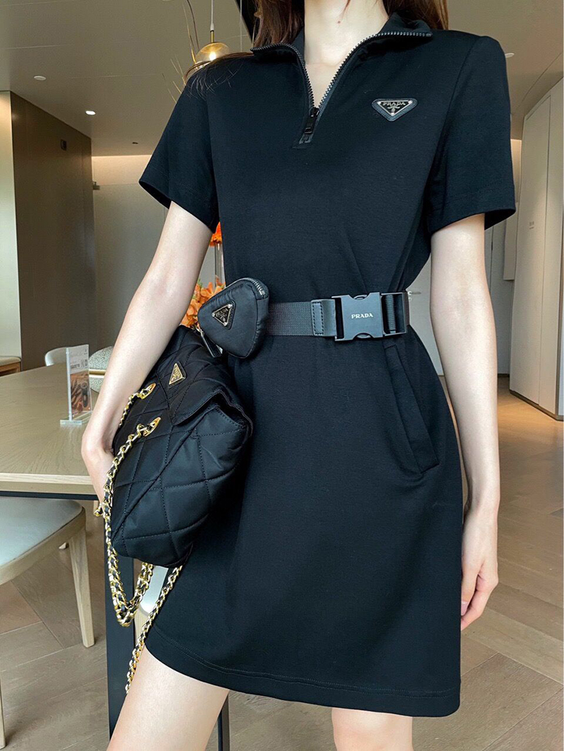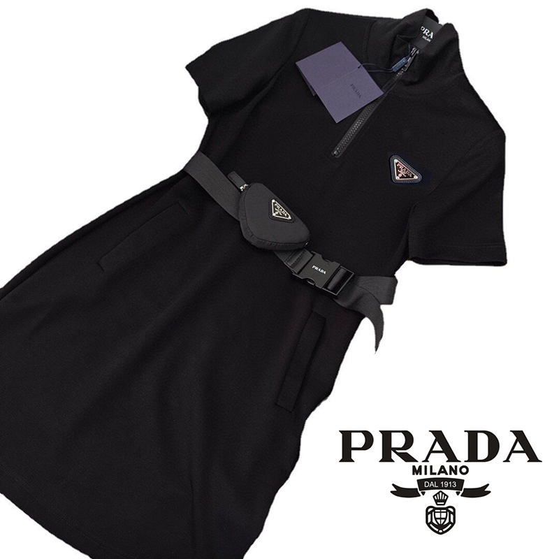 胸元に象徴的なロゴ入りの三角形をあしらったRe-nylonで実現ワンピース。-取り外し可能なファブリックベルト